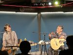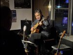 (→)この日はゲストに垂石雅俊クンが登場。キングレコードやリットーミュージックからたくさんの作品を出している素晴らしいギタリストで、この日もガット・ギターとスティール弦のアコースティック・ギター (Morris SC-123U) の2本を駆使して、素敵な演奏を披露してくれました。二人でのギター・デュオも楽しかったです!