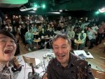 (→)巡業2日目は北へ大移動して、日本海側の秋田。会場の「サントス」は、前のマスターの頃から何度もお世話になリましたが、今のマスターになってからは初めてです。いつもの皆さん、初めての皆さん、ご来場感謝です! 三田村さん、いつも本当にありがとうございます! 終演後も打上げまで楽しくフィーバーしました。写真は打上げの最後まで残ってくださったお二人とのショット。いつも来てくださるハッピーさん (左) と、今回稲刈りが終わった時期でようやく来れたというフルヤオフさん。さすが “米どころの秋田”「稲刈り後」がポイントでした! 次回も稲刈り後の時期で三田村さんにお願いしますね !!