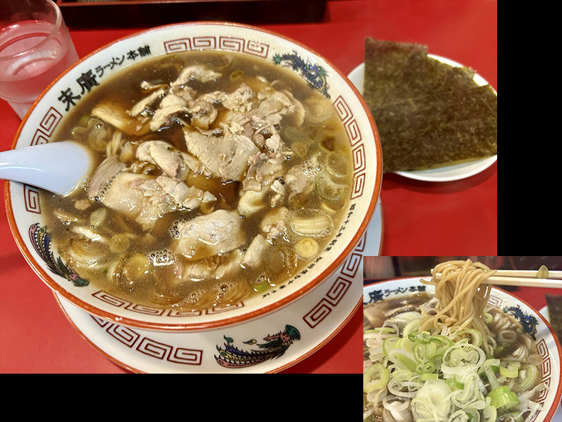 (→)翌日は東京へ戻りですが、電車の時間まで少しあったので、青山さんがラーメンが美味いことで知られる「岩船荘別館」へ連れて行ってくれました。ここは定食屋さんでたくさんのメニューがあるのですが、来ているお客さんのほとんどがラーメンを注文していました。で、私も青山さんも一番人気の「ラーメン定食」をいただきました。柔らかい独特の麺、出汁の効いたスープ…かつて村上にあった伝説的なラーメン店「ちくに」を彷彿させる絶品ラーメンでした! 昔よく食べた「ちくに」の思い出も蘇って、かなり感動的な一杯となりました。毎日食べたいくらいです (笑)。