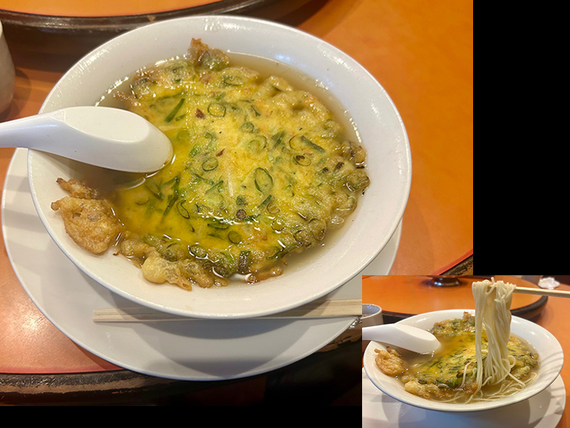 (←)玉名の次は、福岡県うきは市の「蛭子町珈琲店」でのライヴ。こちらも毎年お世話になっているお店なんです。岩元マスターが玉名の宿泊先、旅館「ひきの荘」まで、遠路はるばる車で迎えに来てくれたので楽々移動でした。いつも本当にありがとうございます! 途中、昨年に続いて町中華の名店「白楽天」に寄ってくれました。今回は天津めんをいただきました。昨年食べた醤油ラーメンも独特な味わいで美味しかったですが、う〜ん、これも一味違う美味しさでしたね! 全メニュー制覇したくなりました (笑)。
