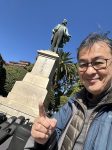 (→)ここから九州巡業の後半戦へ。次のライヴ開催地、鹿児島まで、筑後吉井駅→久留米駅→鹿児島中央駅と乗り継いでの移動です。写真は、明治維新の薩摩の偉人、大久保利通の銅像前での記念ショット。