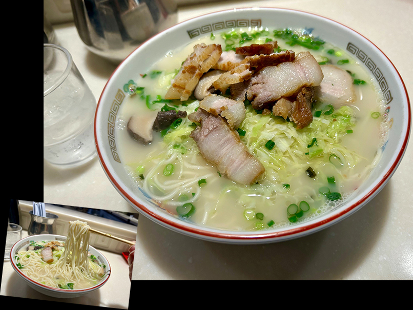(←)そして締めは、行列のできる鹿児島の人気ラーメン店「小金太」。通山さんは「チャーハンもどうですか?」とすすめてくれたのですが、大人になった私は通常のラーメンだけにしました(2023年に締めで行った際には、ラーメンの他にチャーハンも1人前食べたんです…)。通山さん、ご馳走様でした!