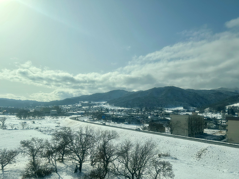 (←)新幹線「はくたか」の車窓から撮った1枚。どの辺りを走っている時かは忘れましたが、久しぶりに見た雪景色に思わずパチリ!
