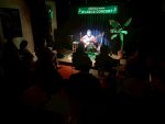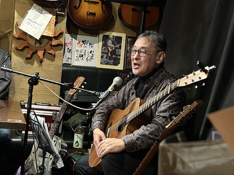 (→)「新樂山」ライヴの様子:その2(撮影:この日だけ参戦のTAB女将おハル)。新樂山は、忘れもしない2年前の12月16日、“脳出血発症のお店”なんです。「右手が思うように動かない…弦が何弦か分からない…」何が何か分からないままやってしまったあの日のライヴ…。あの日のことはトラウマにはなっていますが、復帰できたこと、そして温かく見守ってくれた皆様への感謝の気持ちを忘れないようにしています。皆さん、ご来場ありがとうございました!